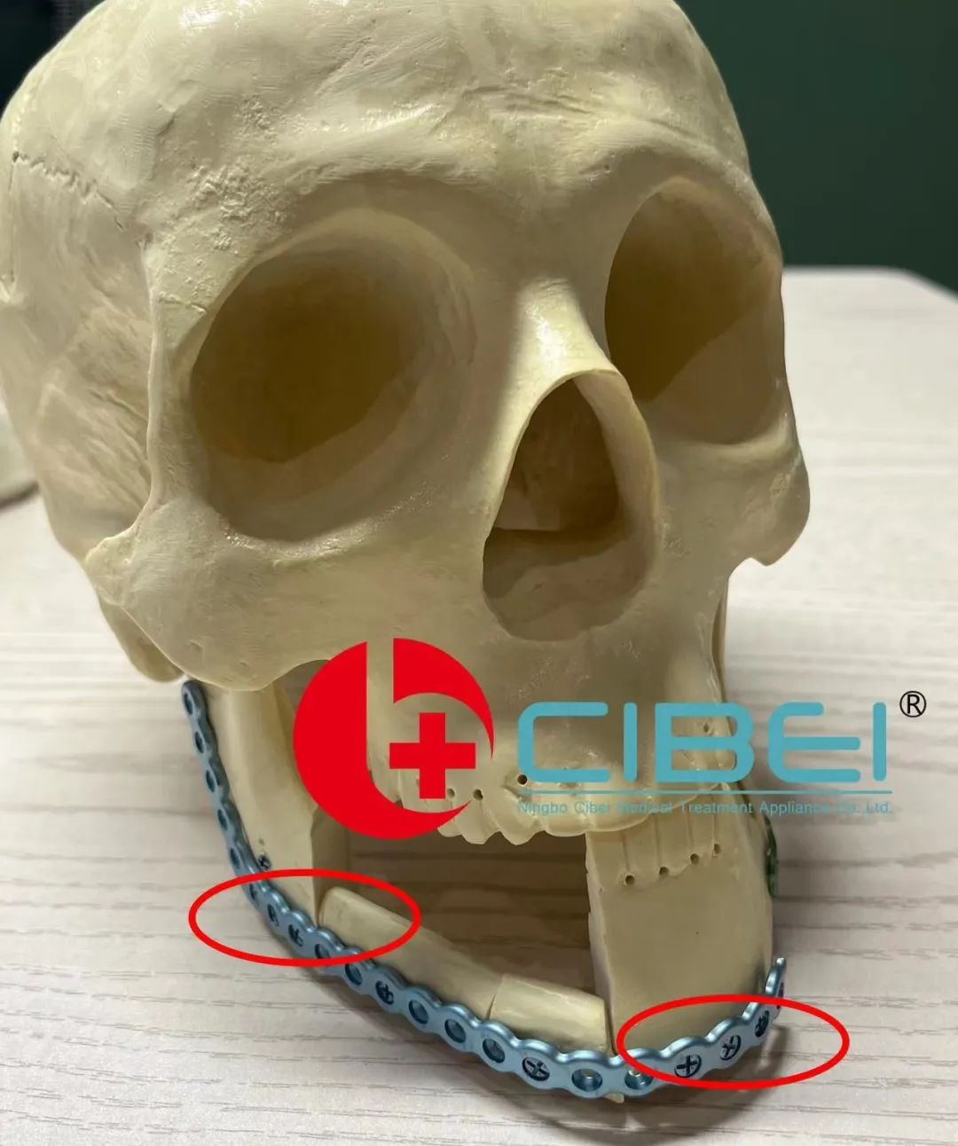 ?主要與術(shù)中鈦板的塑形操作不當(dāng)相關(guān),術(shù)中應(yīng)選擇廠家配套的工具,按照步驟進(jìn)行鈦板彎折,尤其注意避免反復(fù)彎折,鈦板反復(fù)彎折可導(dǎo)致金屬疲勞、劃痕、應(yīng)力集中等導(dǎo)致彎板過程中或是術(shù)中,術(shù)后斷裂;缺乏骨支撐的下頜骨重建板必然發(fā)生斷裂,不進(jìn)行骨移植的單純下頜骨重建板植入不應(yīng)作為下頜骨缺損的永久修復(fù)方式。